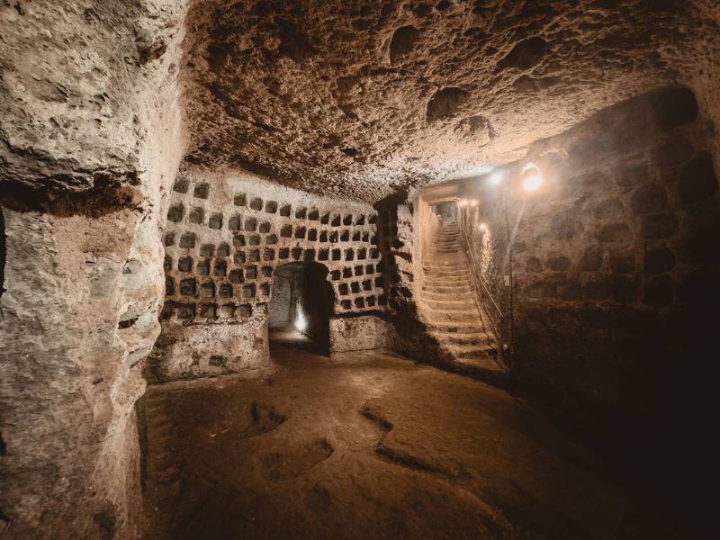 un vero e proprio viaggio nelle profondità della città, tra gallerie scavate nel tufo, antiche cisterne, pozzi, colombaie e ambienti di epoca etrusca, romana, medievale e moderna. Il percorso si snoda sotto il centro storico e permette ai visitatori di esplorare una complessa rete di ambienti ipogei che, nel corso dei secoli, hanno assolto funzioni idriche, produttive, abitative e religiose.