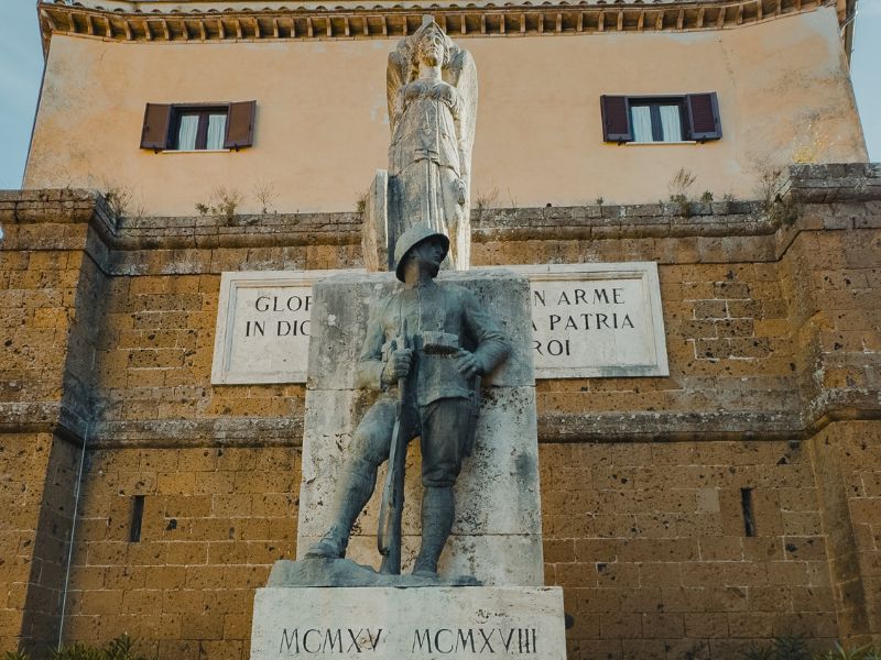Il Monumento ai Caduti della guerra 1915–1918 si trova lungo una delle vie principali di Orte